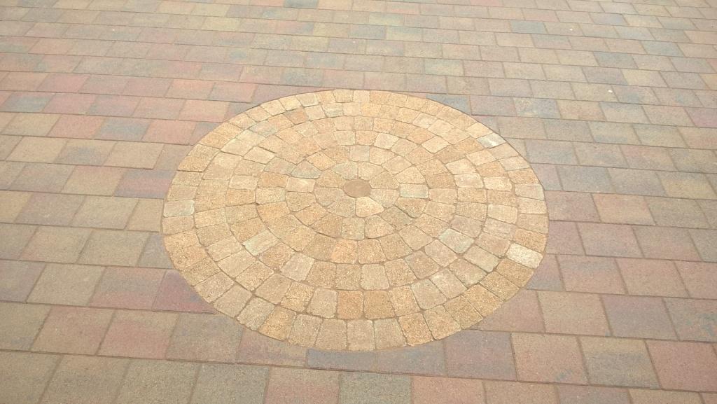 | New golden central circular sett feature in driveway |